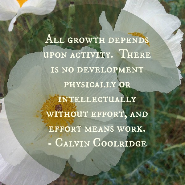 While there was plenty of time to knock out 90% of our move and still savor the downtime, logging on to publish a blog seemed to be an impossibility. This is what makes Write 31 Days a true challenge. Even today, I find myself longing for an afternoon siesta or another caffeine rich beverage, rather than searching for words that to expound on the idea of Growth. In the middle of my sleepy state, I stumbled upon the following quote from Calvin Coolridge (30th U.S. President):
